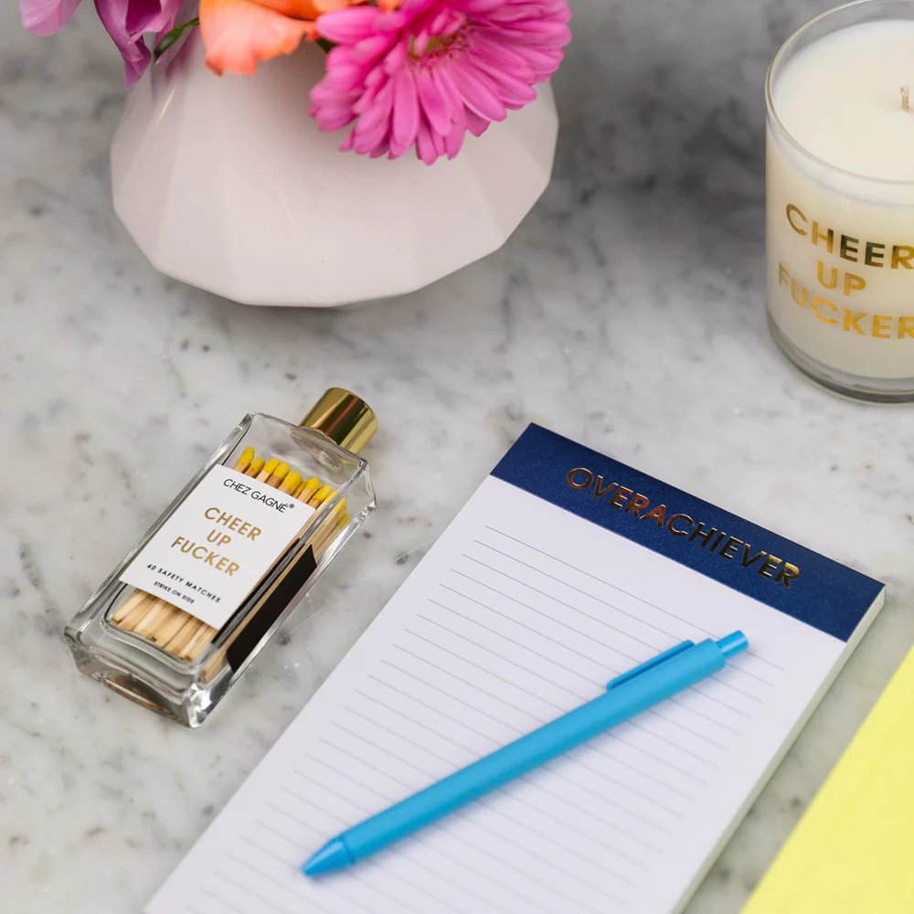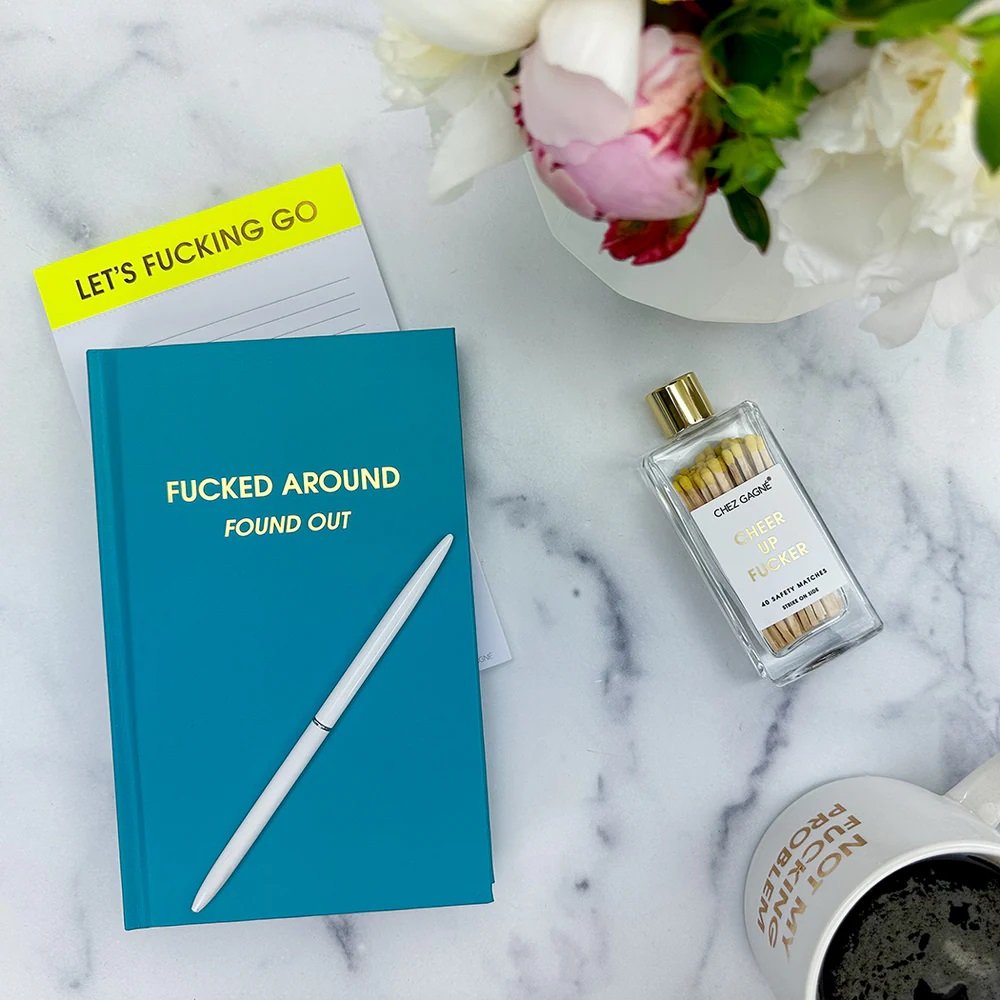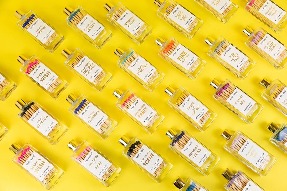 Chez Gagne Everything is Fine Matches: Glass Bottle of 40qty Pink Tipped Safety Matches.