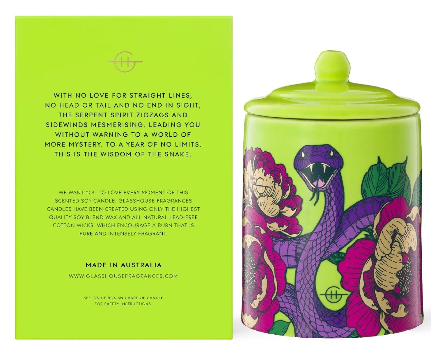 Glasshouse Kakadu Candle: Released from the vault, available exclusively online. Water lilies, honeyed orange blossom, fragrant jasmine and fruity ylang ylang harmoniously combine to renew and refresh.