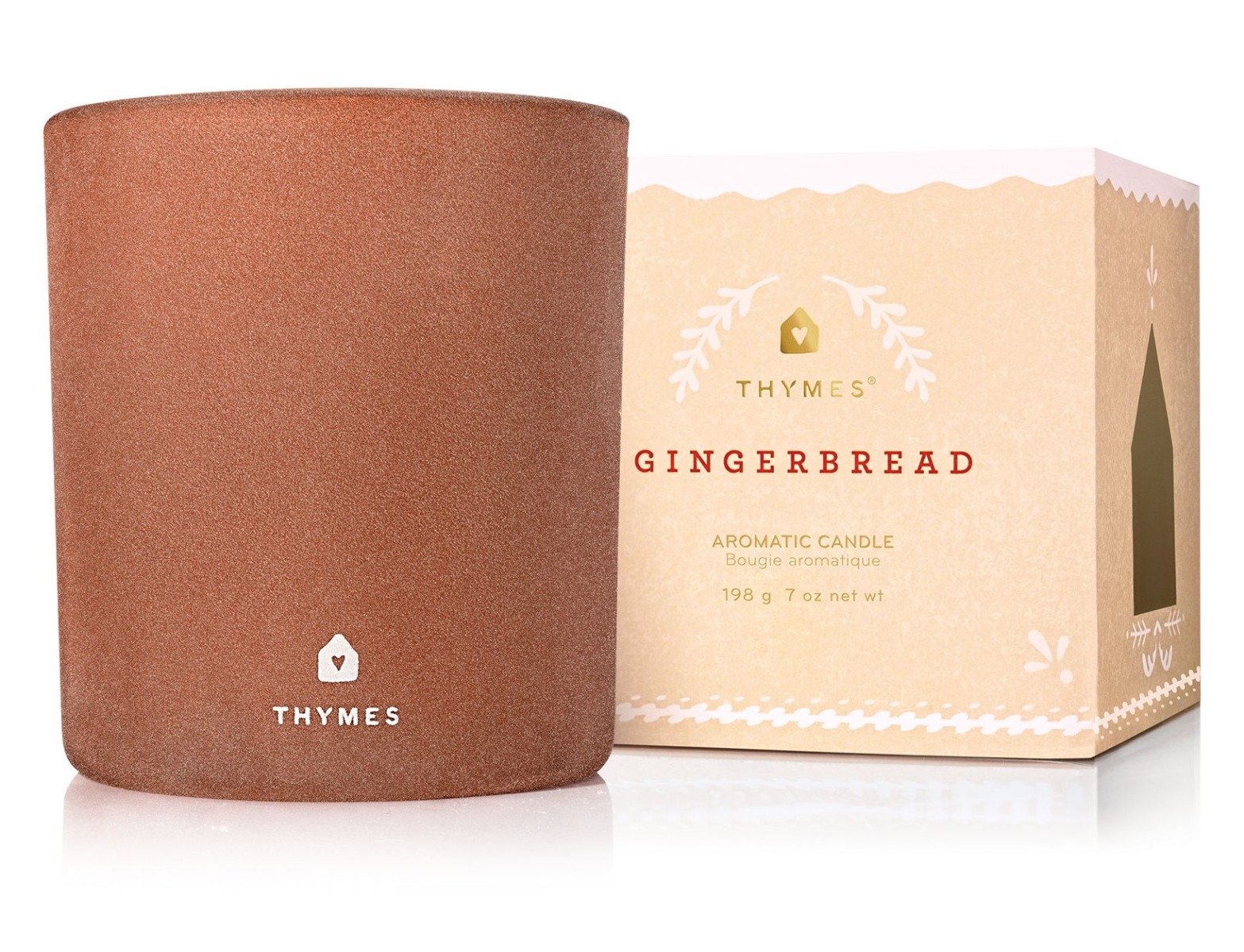 Thymes Gingerbread Candle: Warm the heart and home with this perfectly giftable and festive scented candle. The sugar-coated finish brings back memories of holiday baking while hints of golden amber, cinnamon and gingerbread bring comfort and joy.