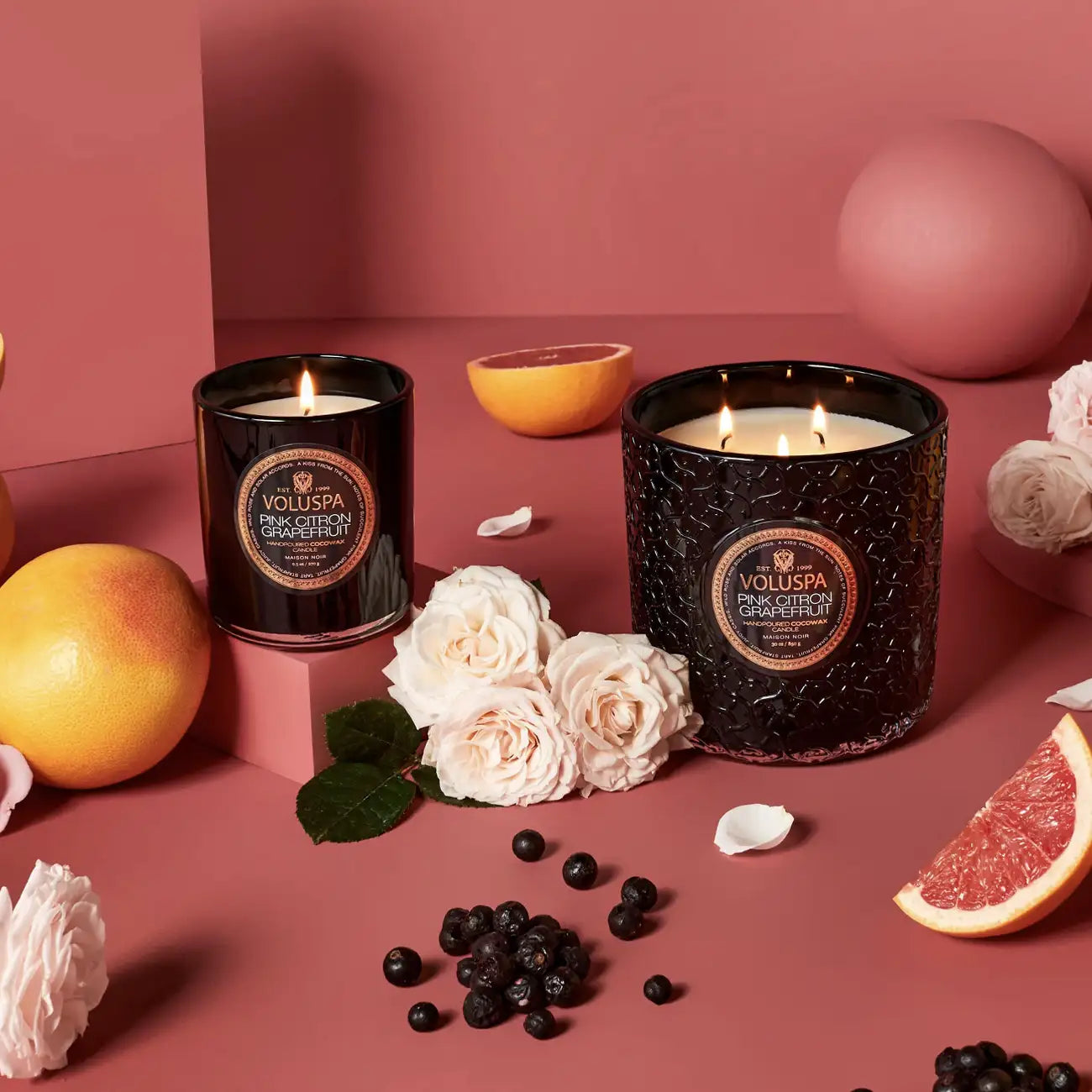 The Maison Noir Collection showcases fragrances from rich woods and exotic spices to lush, romantic florals. Each carefully curated scent is designed to create a distinctive ambiance, gently enhancing moments of relaxation, entertainment, or contemplation. Ideal for gifting or personal indulgence, Voluspa's Maison Noir products effortlessly elevate interiors, creating an inviting atmosphere that resonates with refined elegance and sensory pleasure. Embrace the captivating sophistication of Maison Noir and allow each fragrance to turn ordinary moments into memorable sensory experiences.